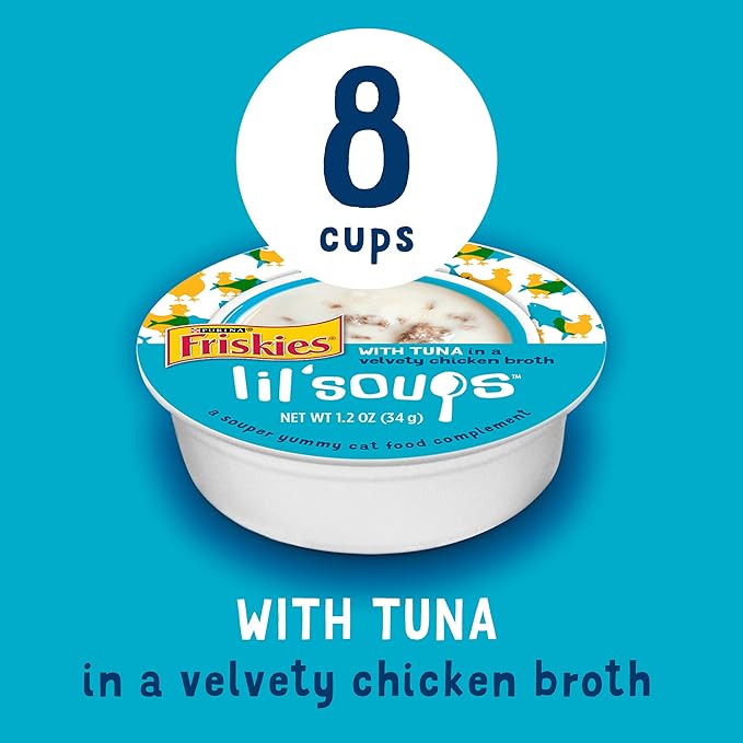 Purina Friskies Lil Soups With Tuna In A Velvety Chicken Broth Adult Wet Cat Food Complement 8 1 2 Oz Cups Amazon Ca Pet Supplies