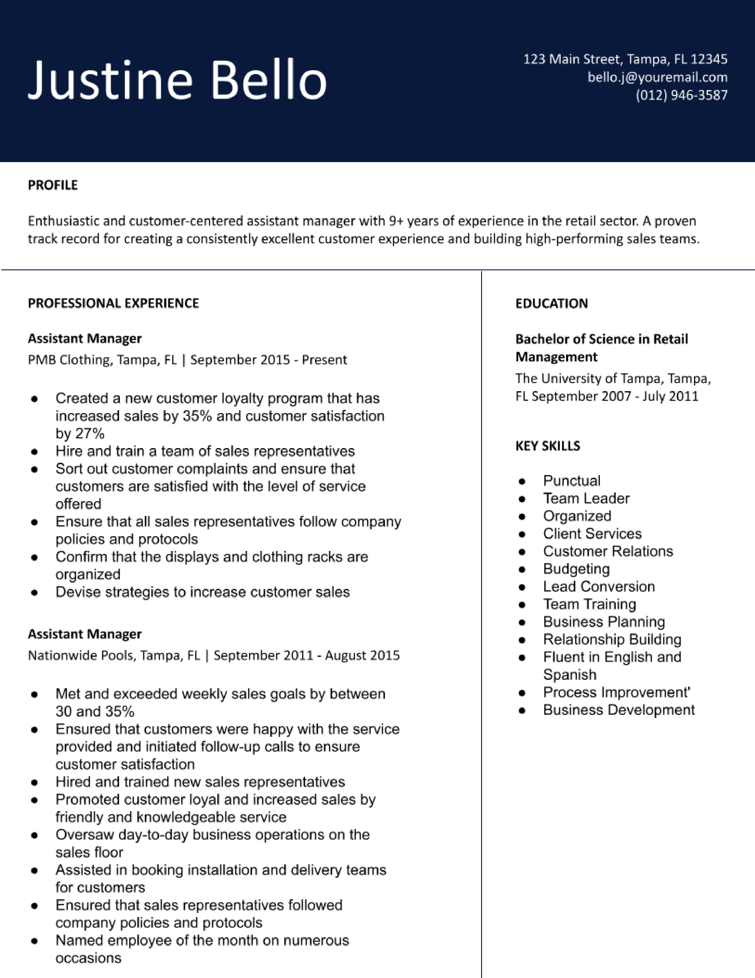 Assistant Manager Resume Examples Of 2022 Resumebuilder Com